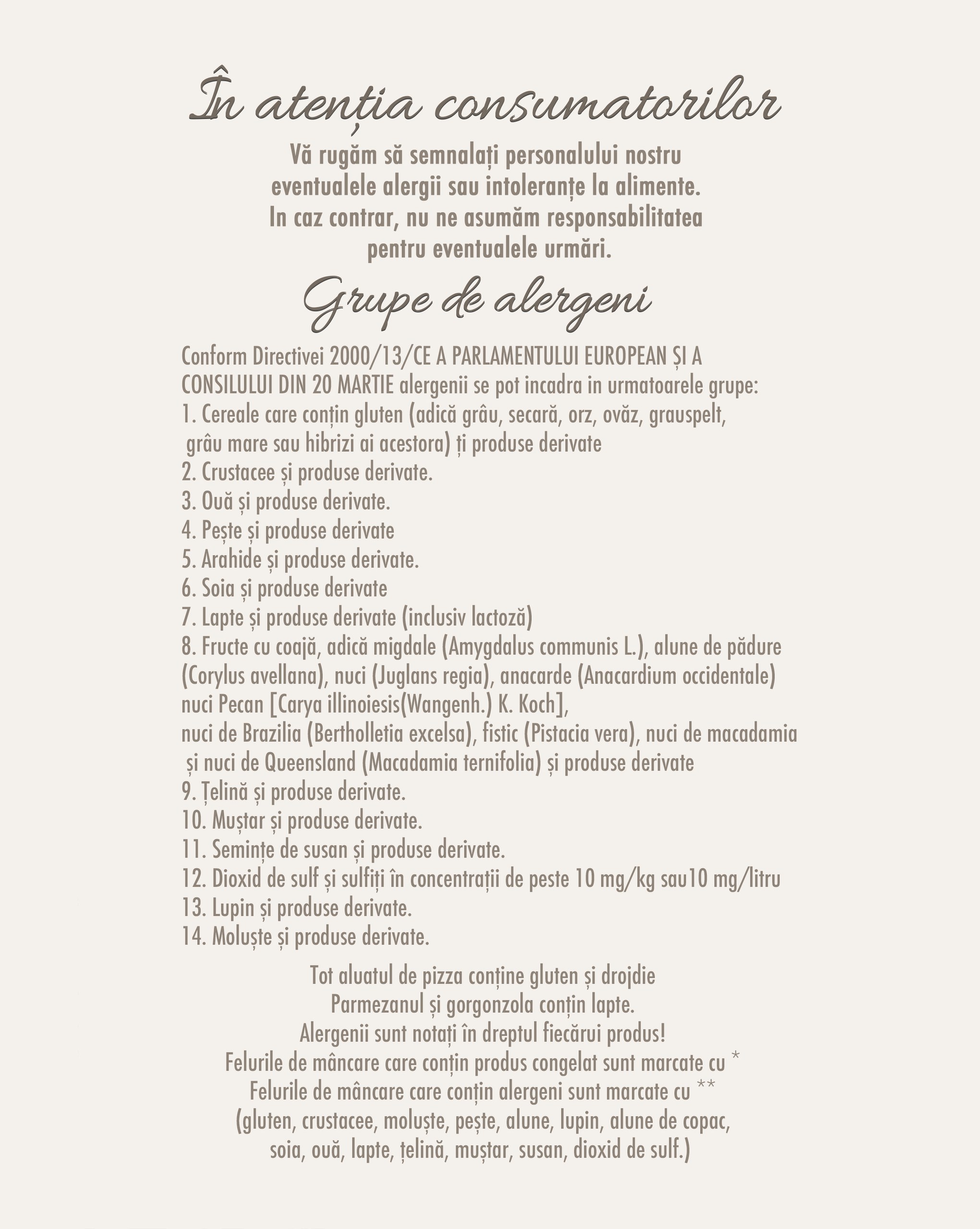Va invitam sa consultati meniul nostru extrem de bogat!